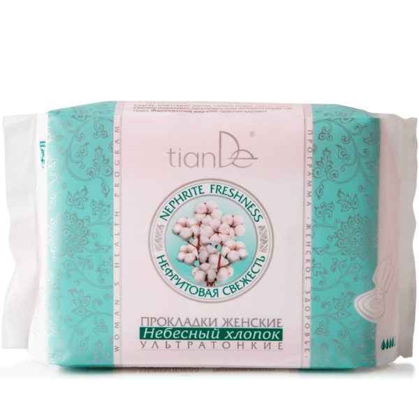 Уште повеќе свежина и удобност со ултра тенките дневни хигиенски влошки Heavenly Cotton од серијата Nephrite Freshness за дневна и ноќна употреба за време на менструацијата.